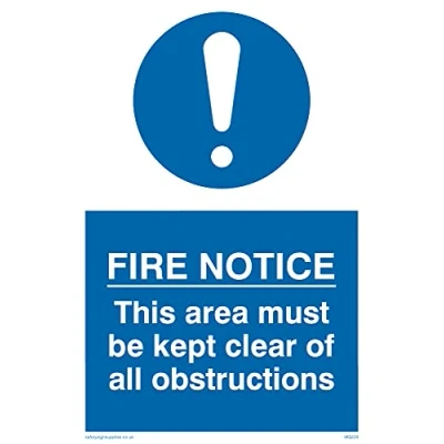 No Symbol This sign is made from vinyl / sticker ‘Air Release†vinyl makes it easy to stick to flat, clean surfaces without bubbles. Not for rough, plastic or dusty surfaces. A6 portrait Sign Text: Fire Notice No Obstructions