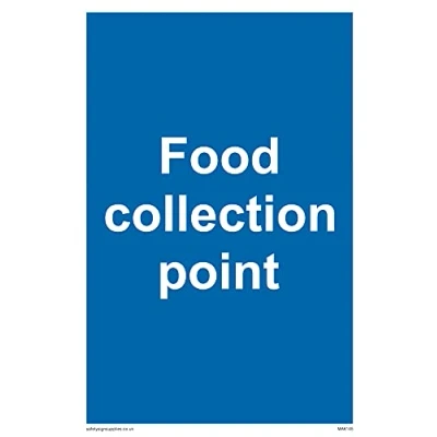 No Symbol This sign is made from vinyl / sticker ‘Air Release†vinyl makes it easy to stick to flat, clean surfaces without bubbles. Not for rough, plastic or dusty surfaces. A6 portrait Sign Text: Food collection point