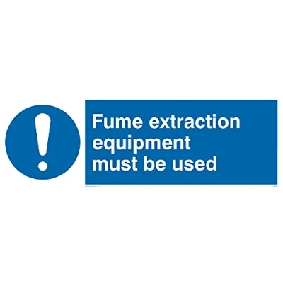 No Symbol This sign is made from vinyl / sticker ‘Air Release†vinyl makes it easy to stick to flat, clean surfaces without bubbles. Not for rough, plastic or dusty surfaces. 31 landscape Sign Text: Fume Extraction Equipment Must Be Used