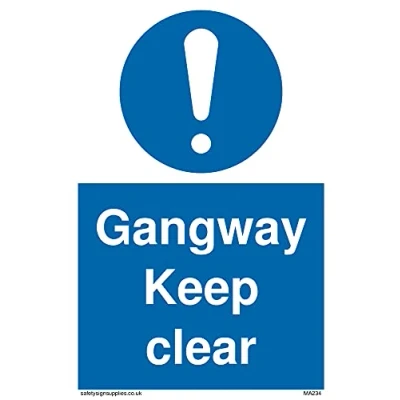 No Symbol This sign is made from vinyl / sticker ‘Air Release†vinyl makes it easy to stick to flat, clean surfaces without bubbles. Not for rough, plastic or dusty surfaces. A6 portrait Sign Text: gangway keep clear