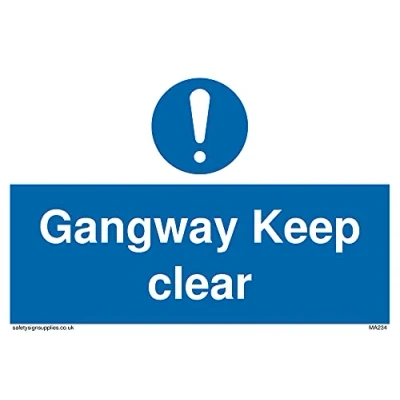 No Symbol This sign is made from vinyl / sticker ‘Air Release†vinyl makes it easy to stick to flat, clean surfaces without bubbles. Not for rough, plastic or dusty surfaces. A6 landscape Sign Text: gangway keep clear