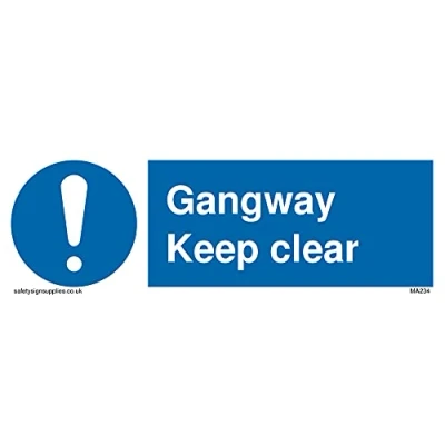 No Symbol This sign is made from vinyl / sticker ‘Air Release†vinyl makes it easy to stick to flat, clean surfaces without bubbles. Not for rough, plastic or dusty surfaces. 15 landscape Sign Text: gangway keep clear