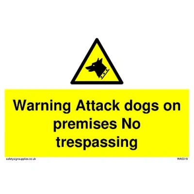 No Symbol This sign is made from vinyl / sticker ‘Air Release†vinyl makes it easy to stick to flat, clean surfaces without bubbles. Not for rough, plastic or dusty surfaces. A6 landscape Sign Text: guard dog in warning triangle