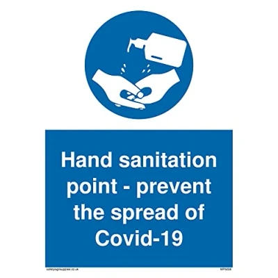 No Symbol This sign is made from vinyl / sticker ‘Air Release†vinyl makes it easy to stick to flat, clean surfaces without bubbles. Not for rough, plastic or dusty surfaces. A5 portrait Sign Text: Hand sanitation pointprevent the spread of Covid-19 with mandatory hand sanistser symb...