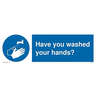 No Symbol This sign is made from vinyl / sticker ‘Air Release†vinyl makes it easy to stick to flat, clean surfaces without bubbles. Not for rough, plastic or dusty surfaces. 31 landscape Sign Text: Have you washed your hands?