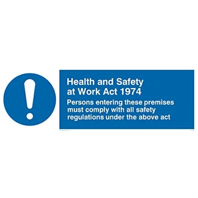 No Symbol This sign is made from vinyl / sticker ‘Air Release†vinyl makes it easy to stick to flat, clean surfaces without bubbles. Not for rough, plastic or dusty surfaces. 31 landscape Sign Text: Health & Safety Work Act 1974