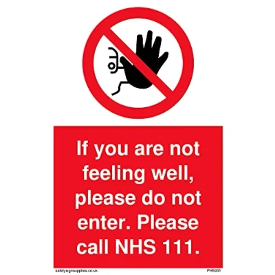 Pack of five if you are not feeling well, Please do enter. call NHS 111. with no access symbol Sign.