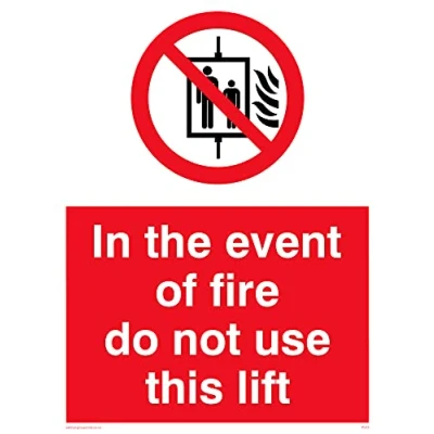 No Symbol This sign is made from vinyl / sticker ‘Air Release†vinyl makes it easy to stick to flat, clean surfaces without bubbles. Not for rough, plastic or dusty surfaces. A5 portrait Sign Text: In Fire Do Not Use Lift
