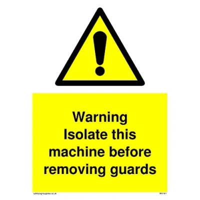 Pack of five Isolate Machine Before Guards Sign 150x200mm A5P