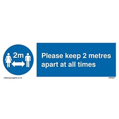 No Symbol This sign is made from vinyl / sticker ‘Air Release†vinyl makes it easy to stick to flat, clean surfaces without bubbles. Not for rough, plastic or dusty surfaces. 15 landscape Sign Text: keep 2 metres apart at all times