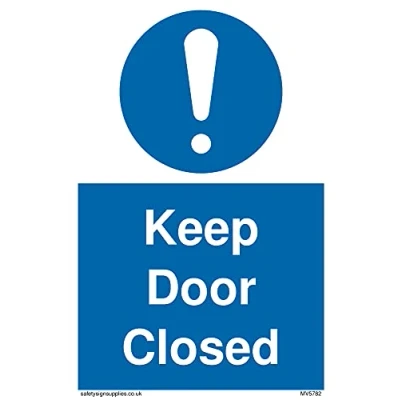 No Symbol This sign is made from vinyl / sticker ‘Air Release†vinyl makes it easy to stick to flat, clean surfaces without bubbles. Not for rough, plastic or dusty surfaces. A6 portrait Sign Text: Keep Door Closed with mandatory exclamation symbol