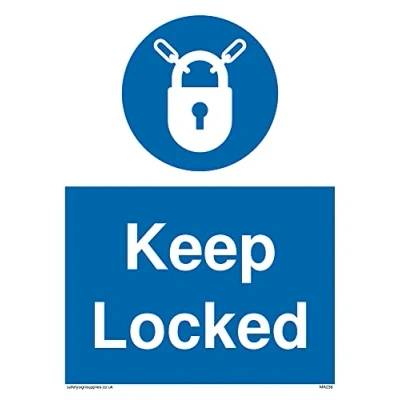 No Symbol This sign is made from vinyl / sticker ‘Air Release†vinyl makes it easy to stick to flat, clean surfaces without bubbles. Not for rough, plastic or dusty surfaces. A5 portrait Sign Text: keep locked
