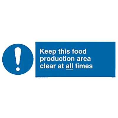 No Symbol This sign is made from vinyl / sticker ‘Air Release†vinyl makes it easy to stick to flat, clean surfaces without bubbles. Not for rough, plastic or dusty surfaces. 15 landscape Sign Text: keep this food production area clear at all times