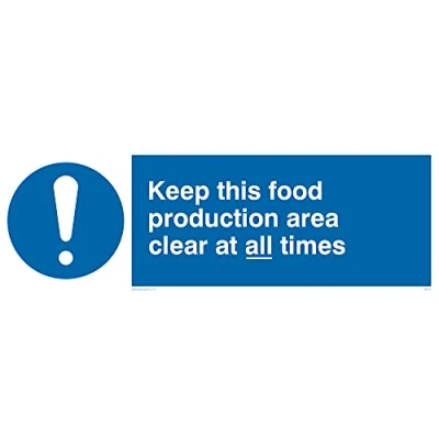 No Symbol This sign is made from vinyl / sticker ‘Air Release†vinyl makes it easy to stick to flat, clean surfaces without bubbles. Not for rough, plastic or dusty surfaces. 31 landscape Sign Text: keep this food production area clear at all times