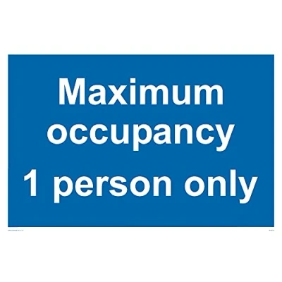 No Symbol This sign is made from vinyl / sticker ‘Air Release†vinyl makes it easy to stick to flat, clean surfaces without bubbles. Not for rough, plastic or dusty surfaces. A6 landscape Sign Text: Maximum occupancy 1 person only