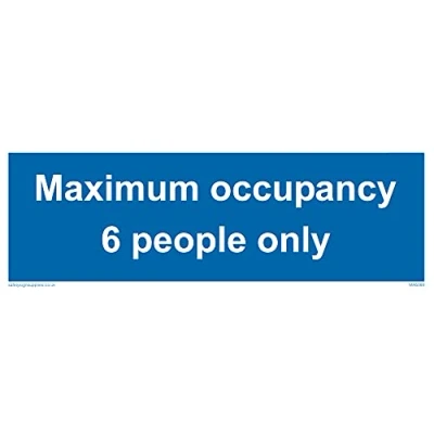 No Symbol This sign is made from vinyl / sticker ‘Air Release†vinyl makes it easy to stick to flat, clean surfaces without bubbles. Not for rough, plastic or dusty surfaces. 15 landscape Sign Text: Maximum occupancy 6 person only