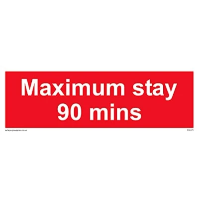 No Symbol This sign is made from vinyl / sticker ‘Air Release†vinyl makes it easy to stick to flat, clean surfaces without bubbles. Not for rough, plastic or dusty surfaces. 15 landscape Sign Text: Maximum stay 90 mins