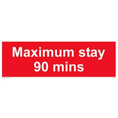 No Symbol This sign is made from vinyl / sticker ‘Air Release†vinyl makes it easy to stick to flat, clean surfaces without bubbles. Not for rough, plastic or dusty surfaces. 31 landscape Sign Text: Maximum stay 90 mins