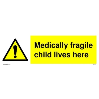 Pack of five Medically fragile child lives here with warning symbol. Sign 300x100mm L31