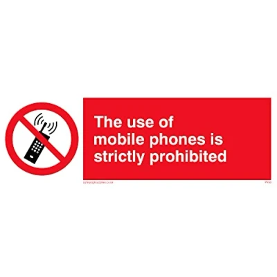 No Symbol This sign is made from vinyl / sticker ‘Air Release†vinyl makes it easy to stick to flat, clean surfaces without bubbles. Not for rough, plastic or dusty surfaces. 15 landscape Sign Text: Mobiles Strictly Prohibited