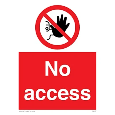 No Symbol This sign is made from vinyl / sticker ‘Air Release†vinyl makes it easy to stick to flat, clean surfaces without bubbles. Not for rough, plastic or dusty surfaces. A5 portrait Sign Text: No Access