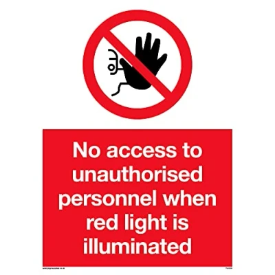 No Symbol This sign is made from vinyl / sticker ‘Air Release†vinyl makes it easy to stick to flat, clean surfaces without bubbles. Not for rough, plastic or dusty surfaces. A5 portrait Sign Text: No Access To Unauthorised Personnel When Red Light Is Illuminated