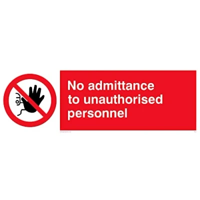 No Symbol This sign is made from vinyl / sticker ‘Air Release†vinyl makes it easy to stick to flat, clean surfaces without bubbles. Not for rough, plastic or dusty surfaces. 31 landscape Sign Text: No Admittance To Unauthorised