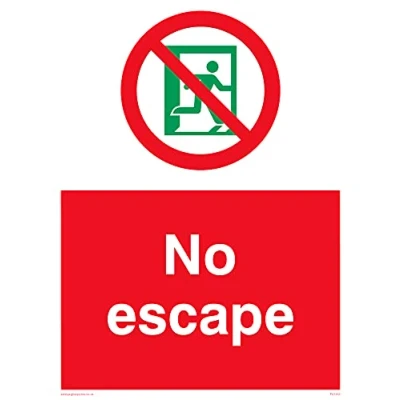 No Symbol This sign is made from vinyl / sticker ‘Air Release†vinyl makes it easy to stick to flat, clean surfaces without bubbles. Not for rough, plastic or dusty surfaces. A5 portrait Sign Text: No Escape (emergency Exit)