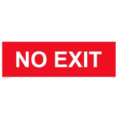 No Symbol This sign is made from vinyl / sticker ‘Air Release†vinyl makes it easy to stick to flat, clean surfaces without bubbles. Not for rough, plastic or dusty surfaces. 31 landscape Sign Text: NO EXIT red background