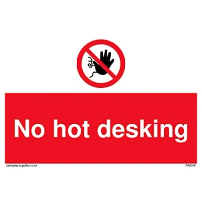 No Symbol This sign is made from vinyl / sticker ‘Air Release†vinyl makes it easy to stick to flat, clean surfaces without bubbles. Not for rough, plastic or dusty surfaces. A6 landscape Sign Text: No hot desking