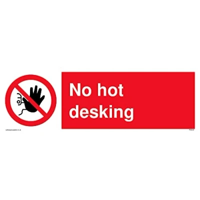 No Symbol This sign is made from vinyl / sticker ‘Air Release†vinyl makes it easy to stick to flat, clean surfaces without bubbles. Not for rough, plastic or dusty surfaces. 31 landscape Sign Text: No hot desking
