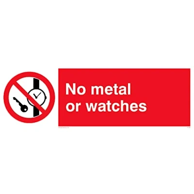 Pack of five No Metal Or Watches Sign 300x100mm L31