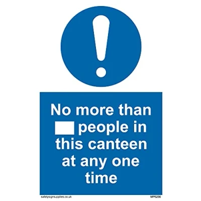 No Symbol This sign is made from vinyl / sticker ‘Air Release†vinyl makes it easy to stick to flat, clean surfaces without bubbles. Not for rough, plastic or dusty surfaces. A6 portrait Sign Text: No more than xxx people in this canteen at any one time