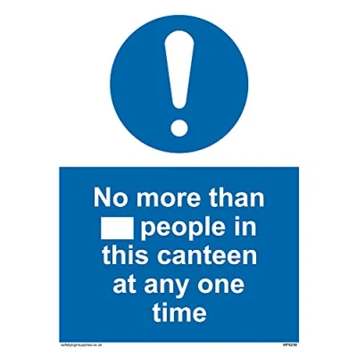 No Symbol This sign is made from vinyl / sticker ‘Air Release†vinyl makes it easy to stick to flat, clean surfaces without bubbles. Not for rough, plastic or dusty surfaces. A5 portrait Sign Text: No more than xxx people in this canteen at any one time