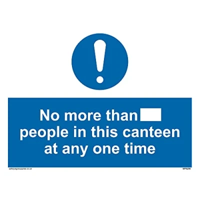 No Symbol This sign is made from vinyl / sticker ‘Air Release†vinyl makes it easy to stick to flat, clean surfaces without bubbles. Not for rough, plastic or dusty surfaces. A5 landscape Sign Text: No more than xxx people in this canteen at any one time
