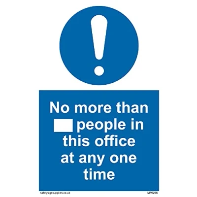 No Symbol This sign is made from vinyl / sticker ‘Air Release†vinyl makes it easy to stick to flat, clean surfaces without bubbles. Not for rough, plastic or dusty surfaces. A6 portrait Sign Text: No more than xxx people in this office at any one time