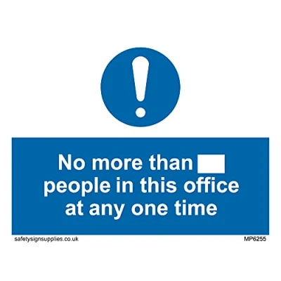 No Symbol This sign is made from vinyl / sticker ‘Air Release†vinyl makes it easy to stick to flat, clean surfaces without bubbles. Not for rough, plastic or dusty surfaces. A7 landscape Sign Text: No more than xxx people in this office at any one time