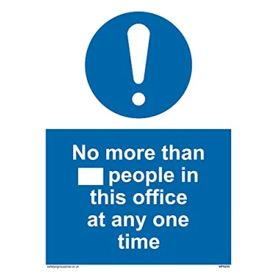 No Symbol This sign is made from vinyl / sticker ‘Air Release†vinyl makes it easy to stick to flat, clean surfaces without bubbles. Not for rough, plastic or dusty surfaces. A5 portrait Sign Text: No more than xxx people in this office at any one time
