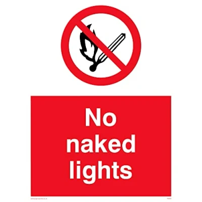 No Symbol This sign is made from vinyl / sticker ‘Air Release†vinyl makes it easy to stick to flat, clean surfaces without bubbles. Not for rough, plastic or dusty surfaces. A5 portrait Sign Text: No Naked LightsSafety