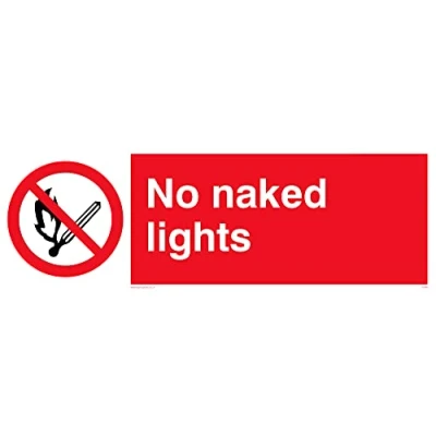 No Symbol This sign is made from vinyl / sticker ‘Air Release†vinyl makes it easy to stick to flat, clean surfaces without bubbles. Not for rough, plastic or dusty surfaces. 31 landscape Sign Text: No Naked LightsSafety