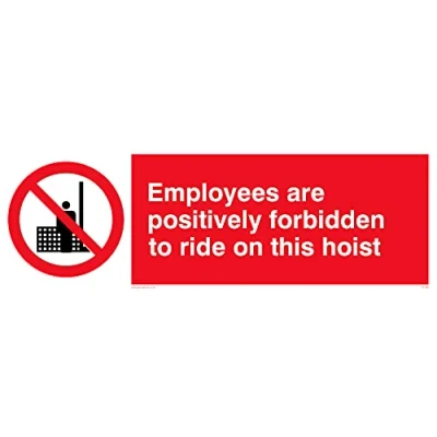 No Symbol This sign is made from vinyl / sticker ‘Air Release†vinyl makes it easy to stick to flat, clean surfaces without bubbles. Not for rough, plastic or dusty surfaces. 31 landscape Sign Text: No Riding On Hoist