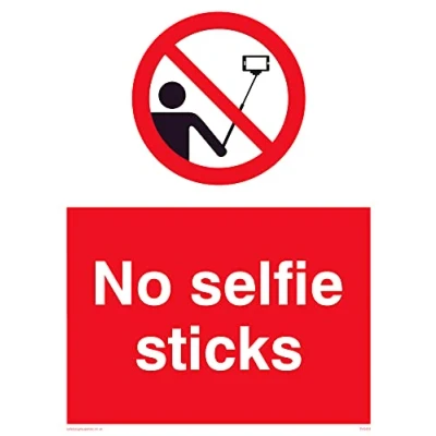 No Symbol This sign is made from vinyl / sticker ‘Air Release†vinyl makes it easy to stick to flat, clean surfaces without bubbles. Not for rough, plastic or dusty surfaces. A5 portrait Sign Text: No selfie sticks