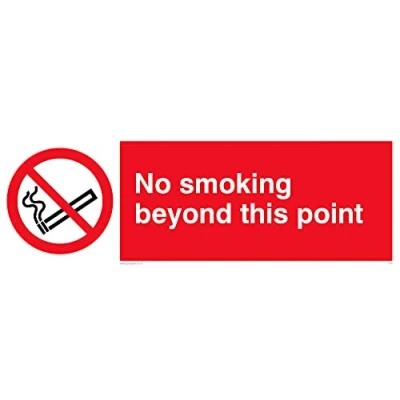 No Symbol This sign is made from vinyl / sticker ‘Air Release†vinyl makes it easy to stick to flat, clean surfaces without bubbles. Not for rough, plastic or dusty surfaces. 31 landscape Sign Text: No Smoking Beyond This Point