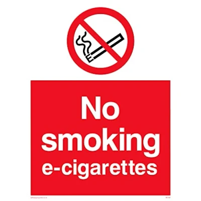 No Symbol This sign is made from vinyl high tack A stickier sticker. Uses a stronger adhesive to make it more suitable for plastic surfaces like Wheelie Bins or where the sticker might get rubbed. A5 portrait Sign Text: No Smoking E-cigarettes