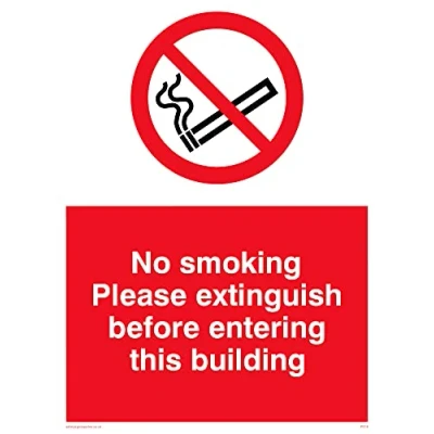 No Symbol This sign is made from vinyl / sticker ‘Air Release†vinyl makes it easy to stick to flat, clean surfaces without bubbles. Not for rough, plastic or dusty surfaces. A5 portrait Sign Text: No Smoking Extinguish
