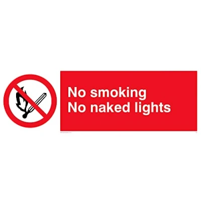 No Symbol This sign is made from vinyl / sticker ‘Air Release†vinyl makes it easy to stick to flat, clean surfaces without bubbles. Not for rough, plastic or dusty surfaces. 31 landscape Sign Text: No Smoking No Naked Lights