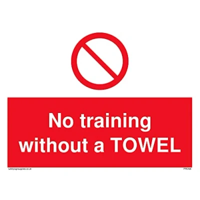 P001 : General This sign is made from vinyl high tack A stickier sticker. Uses a stronger adhesive to make it more suitable for plastic surfaces like Wheelie Bins or where the sticker might get rubbed. A5 landscape Sign Text: No training without a TOWEL