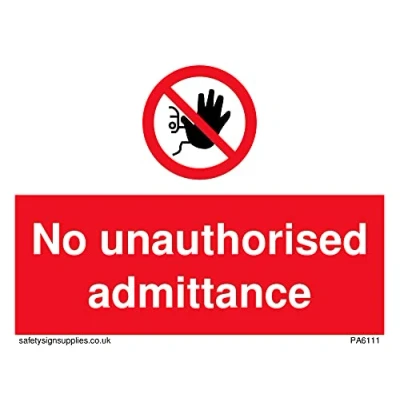 No Symbol This sign is made from vinyl / sticker ‘Air Release†vinyl makes it easy to stick to flat, clean surfaces without bubbles. Not for rough, plastic or dusty surfaces. A7 landscape Sign Text: No unauthorised admittance with no access symbol