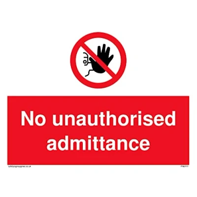 No Symbol This sign is made from vinyl / sticker ‘Air Release†vinyl makes it easy to stick to flat, clean surfaces without bubbles. Not for rough, plastic or dusty surfaces. A5 landscape Sign Text: No unauthorised admittance with no access symbol