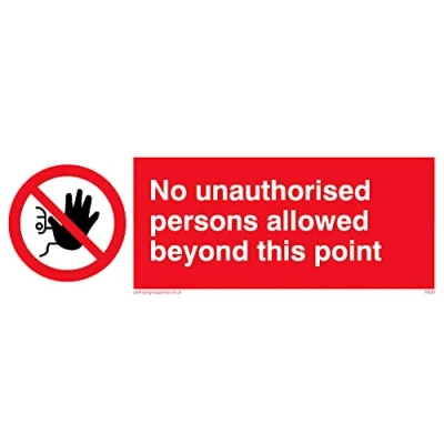 No Symbol This sign is made from vinyl / sticker ‘Air Release†vinyl makes it easy to stick to flat, clean surfaces without bubbles. Not for rough, plastic or dusty surfaces. 15 landscape Sign Text: No Unauthorised Beyond Point